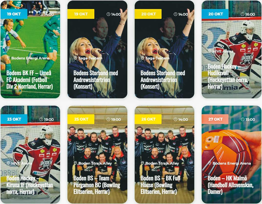 förening, inför helgen med Bodens Storband, Andrewsistersdamerna och hemvändare. Det hela äger rum den 19 och 20 oktober på SAGA-teatern i Boden. Läs mer på sidan 13.