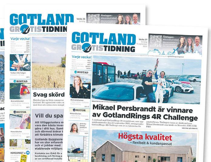 Kontaktformulär Företagarevill du nå alla på Gotland! Välkommen att kontakta oss på Gotland Gratistidning så hittar vi på en bra lösning! Monica Stubé 070-515 80 07 Roine Söderlind 070-495 30 40 Gratis till alla hushåll & företag på Gotland • Årgång 22 • www.gratistidning.com • annons@gratistidning.com • tipsa@gratistidning.com • gratistidning.com/gotland Vecka 10 torsdag 7 mars 2024 E-TIDNING