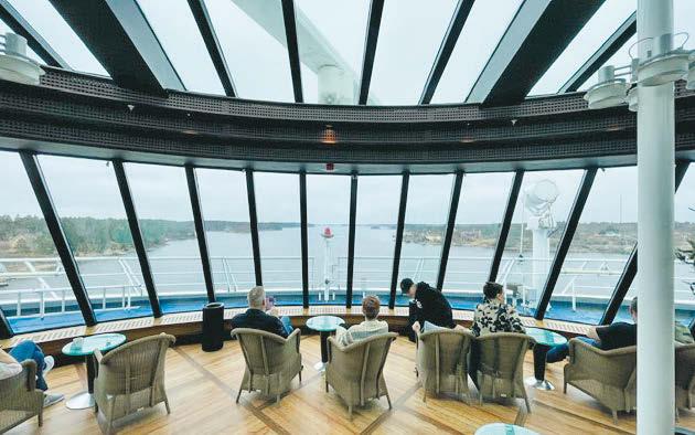 Många barer fanns runt om på fartyget, så det är bara att slå sig ner. Dansband spelade på flera ställen och en dans- och musikgrupp showade på kvällen. Det fanns något för alla som gillade att dansa – disko också. Panoramasalongen i fören var bokstavligen en höjdare där man fick god blick över skärgården när man gled fram. Frukostbuffén var också rejäl, inte mycket saknades. Bland det bästa var den nyrenoverade SPA-avdelningen med