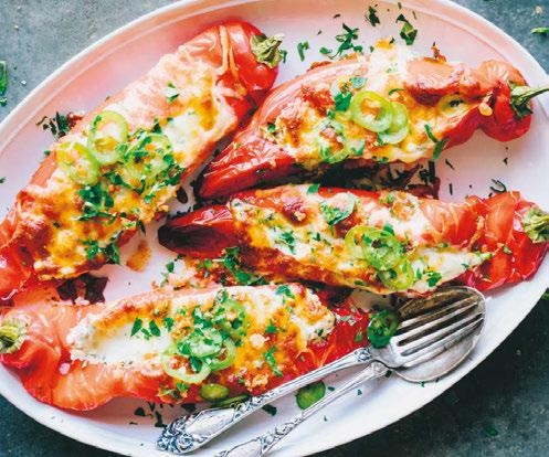 Röd spetspaprika fylld med ost, spenat och jalapeño