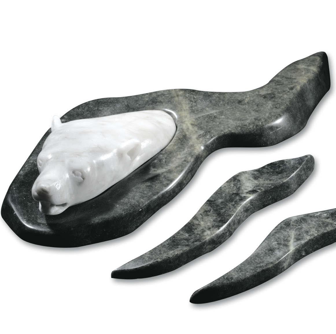 modern teknik och samtida uttrycksformer. Material som sten och ben och teman från inuitisk mytologi och berättartradition används för att reflektera kring vår samtid. – Utmaningarna i Arktis är inte främmande för någon av oss, då vi också konfronteras med dem i vår egen omgivning. Klimatförändringarna känner inga gränser. Det är vår ära att nu dela denna hyllade utställning i utökad form med publiken i Norrbotten, både på konstmuseet i Kristallen och genom en digital mervärdesutställning som ger möjlighet till fördjupning, avslutar utställningens co-curator, länskonstmuseichef Selma Green.