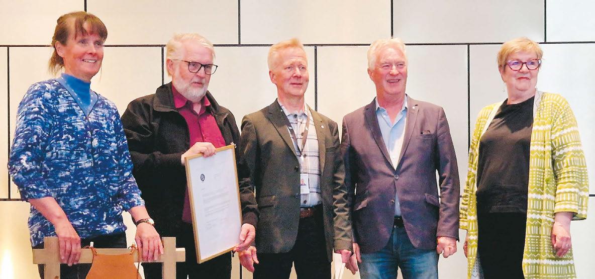 utmärkelsen Årets kommun Norrbotten. Från vänster: Åsa Persson, stadsbyggnadschef, Håkan Siggemo, samordnare, Mats Taaveniku, kommunalråd, samt Leif Engström och Marianne Holmfrid, båda ordföranden i Hela Sverige ska leva Norrbotten. Foto: Åsa Redin