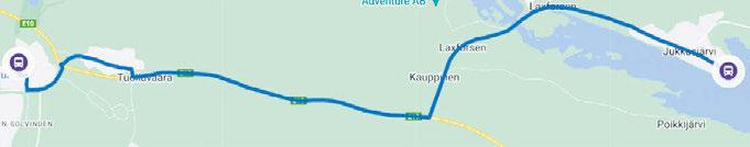 Rutt - Endast avstigande! Maskinvägen ➞ Raketskolan ➞ Lombolo backe ➞ Österleden ➞ Jägaregatan ➞ Skrädaregatan ➞ Grönstensvägen ➞ Kiruna Station ➞ Övre Norrmalm ➞ Gamla Polishuset ➞ Hj. Lundbomsv. ➞ Maskinvägen