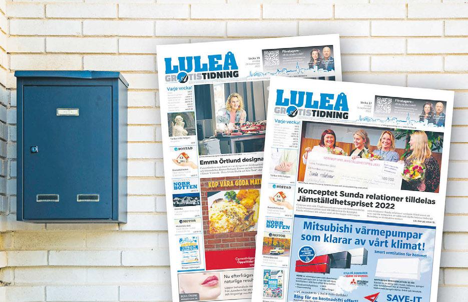 Boka annons eller frågor - välkommen att kontakta oss! BOKA ANNONSERING Ni kan även gå in på boka.gratistidning.com eller skicka e-post till boka@gratistidning.com. Varje vecka Upplaga 82 000 ex Fyra nummer / år Upplaga 110 000 ex norrbotten.com Sommartidning vecka 27 Upplaga 122 500 ex Norgetidning vecka 21 Upplaga 165 000 ex ÄNNU STÖRRE SPRIDNING Annonspaket Varje månad (löning) Upplaga 146 500 ex Annonspaket Glad Sommar GRATISTIDNINGEN - kan du lita på lokal hög räckvidd ger effekt monica.stube@ gratistidning.com ake.tapani@ gratistidning.com 070-590 95 69 peder.gidlund@ gratistidning.com roine.soderlind@ gratistidning.com Alexandra Granström alexandra.granstrom@ gratistidning.com Maria Salonen 070-620 99 22 maria.salonen@ gratistidning.com victoria.timander@ gratistidning.com STÄDER Umeå -2°C Stockholm 1°C Göteborg 6°C Köpenhamn 6°C Oslo 0°C Helsingfors -2°C