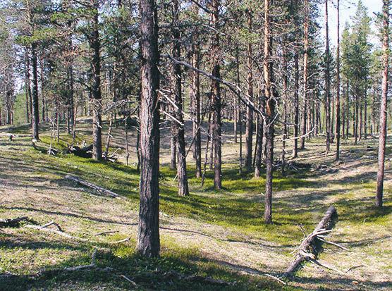 Brandspår i gammeltallar På sluttningen av bergen Vähävaara och Torasvaara, ner mot Skrövån, ligger Skrövens naturreservat. Området har en värdefull gammal tallskog som är präglad av äldre tiders skogsbränder. Alla gamla, döende och döda träd som står kvar här är viktiga för många sällsynta lavar, svampar och insekter. Barrskog där ett träd har ett är i barken.