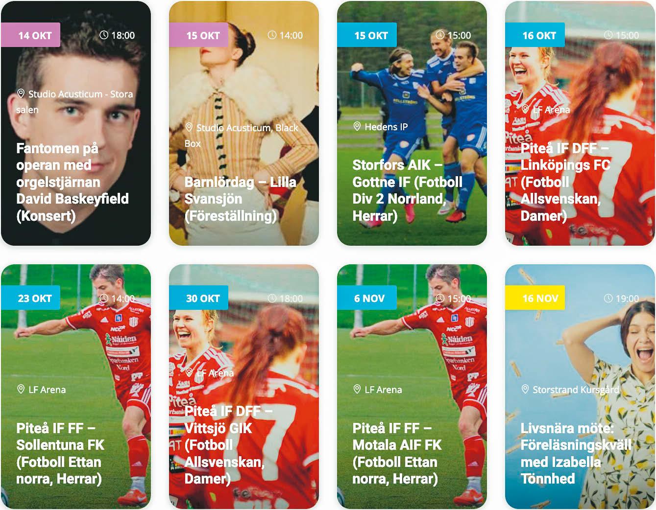 Läs mer på pitea.gratistidning.com - Med reservation för ev. ändringar av tider, datum och priser. VARJE VECKA I DIN GRATISTIDNING Nöje & Evenemang OBS! Det är gratis att lägga in evenemangen! - länk via QR-kod. Mandolingatan 1, Öjebyn 0911-601 47 www.storstrand.nu Julbord Njut av vårt smakfulla julbord, i vår ljusa matsal med utsikt över Piteälven. 27 november - 20 december Pris Vuxen 495 kr inkl. dryck Barn 245 kr tom 12 år För datum och tider besök vår hemsida eller kontakta oss så berättar vi mer! mötesplatsen vid Piteälven HOTELL | KONFERENS | RESTAURANG | EVENT | CAMPING LÄS MER OCH BOKA PÅ STORFORSEN.SE/EVENEMANG NÖJESPAKET 1915 SEK/PERSON Showentré | Trerätters supémiddag | Boende del i dubbelrum | Frukost 4 & 5 NOVEMBER Wallmans_124x182.indd 1 2022-09-26 11:57:21