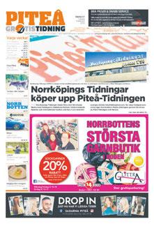 Tryck: Tryck i Norr, Luleå Upplaga: 25 000 ex Ansvarig utgivare: Peder Gidlund, 070-590 95 69, peder.gidlund@gratistidning.com Annonspriser: Se www.gratistidning.com Distribution: Alla hushåll och företag av Svensk Hemleverans. Betalningsvillkor: 10 dgr netto. Efter förfallodagen debiteras ränta med gällande diskonto +8% Utgivningsdag: Onsdagar. Manusstopp: Radisannonser fredag 15.00. Företags- och föreningsannonser fredag 12.00. Annonsgranskning: Piteå Gratistidning förbehåller sig rätten att avböja olämpliga annonser. Reklamationer: Reklamationer beträffande annonser skall göras inom 3 dgr beträffande fakturor inom 10 dgr. För fel annonser är tidningen utan ansvar för eventuell skada på grund av uteblivet eller felaktigt införande eller fördröjda annonssvar. Piteå Gratistidning ansvar är begränsat till högst annonskostnaden. Org. nummer: Piteå Gratistidning ges ut av Svenska Civildatalogerna AB, 556348-5928. Copyright: Observera att annonser Piteå Gratistidning innefattas av Copyright (upphovsrätt). Får ej införas i annat media utan tillstånd. För mer information/tidningen på nätet: www.gratistidning.com. POSTADRESS Piteå- och Norrbotten Gratistidning Hermelinsgatan 1 972 34 Luleå Boka: boka@gratistidning.com Manus: annons@gratistidning.com Tipsa: tipsa@gratistidning.com Webb: pitea.gratistidning.com ANSVARIG UTGIVARE Peder Gidlund, 070-590 95 69 peder.gidlund@gratistidning.com PRIVATANNONS DOITYOURSELF Webb: privat.gratistidning.com SOCIALA MEDIER - FÖLJ OSS Facebook: @PiteaGratistidning Instagram: #PiteaGratistidning Boka annons eller frågor - välkommen att kontakta oss! BOKA ANNONSERING Ni kan även gå in på boka.gratistidning.com eller skicka e-post till boka@gratistidning.com. Varje vecka Upplaga 82 000 ex Fyra nummer / år Upplaga 110 000 ex norrbotten.com Sommartidning vecka 27 Upplaga 122 500 ex Norgetidning vecka 21 Upplaga 165 000 ex ÄNNU STÖRRE SPRIDNING Annonspaket Varje månad (löning) Upplaga 146 500 ex Annonspaket Glad Sommar GRATISTIDNINGEN - kan du lita på lokal hög räckvidd ger effekt monica.stube@ gratistidning.com ake.tapani@ gratistidning.com 070-590 95 69 peder.gidlund@ gratistidning.com Anette Holmqvist 070-190 15 91 anette@saljg.se Anders Långström 070-190 15 90 anders@saljg.seroine.soderlind@ gratistidning.com Alexandra Granström alexandra.granstrom@ gratistidning.com LOKALT VÄDER - PITEÅ SÖNDAGLÖRDAGONSDAGTORSDAGFREDAG 10°C 4°C 7 m/s 9°C 4°C 6 m/s 4 m/s 9°C 6°C 8 m/s 12/1013/1014/1015/10 8°C 4°C STÄDER Umeå 10°C Stockholm 9°C Göteborg 11°C Köpenhamn 9°C Oslo 3°C Helsingfors 9°C London 5°C Rom 14°C Madrid 16°C Paris 11°C TURISTORTER Gran Canaria 18°C Nice 17°C Málaga 20°C Mallorca 19°C Rhodos 21°C Alanya 22°C Bangkok 30°C Dubai 31°C New York 14°C Orlando 23°C TEMPERATUR NORRBOTTEN TORSDAG 13/10 JOKKMOKK 7° GÄLLIVARE 5° KIRUNA 5° VI INFORMERAR VÅRA MANUSSTOPP för garanterad korrektur torsdagar kl. 12.00 Tryckfärdiga annonser måndagar kl. 15.00 Maila gärna in era bokningar och manus på: annons@gratistidning.com 2
