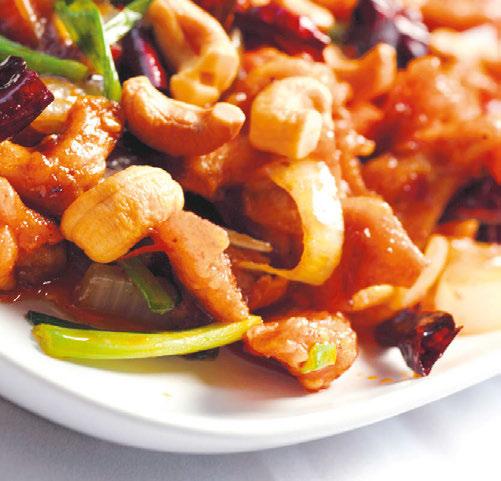 3. Stek kycklingen tills den har fått en fin stekyta och tillsätt sedan lök och paprika och stek tills kycklingen är genomstekt. Häll i såsen tillsammans med cashewnötter och koka upp och låt det puttra några minuter.