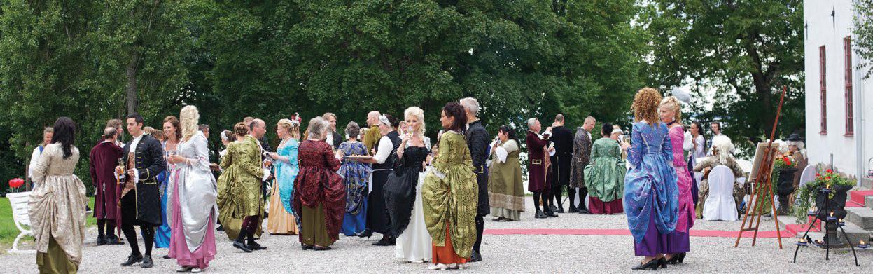 TrerĂ€tters middag, sĂ„nghĂ€ften och kaïŹe. frĂ„n 1495 kr ex moms/person (minimum 20 personer) www.sundbyholms-slott.se/1700-tals-maskeradbal/