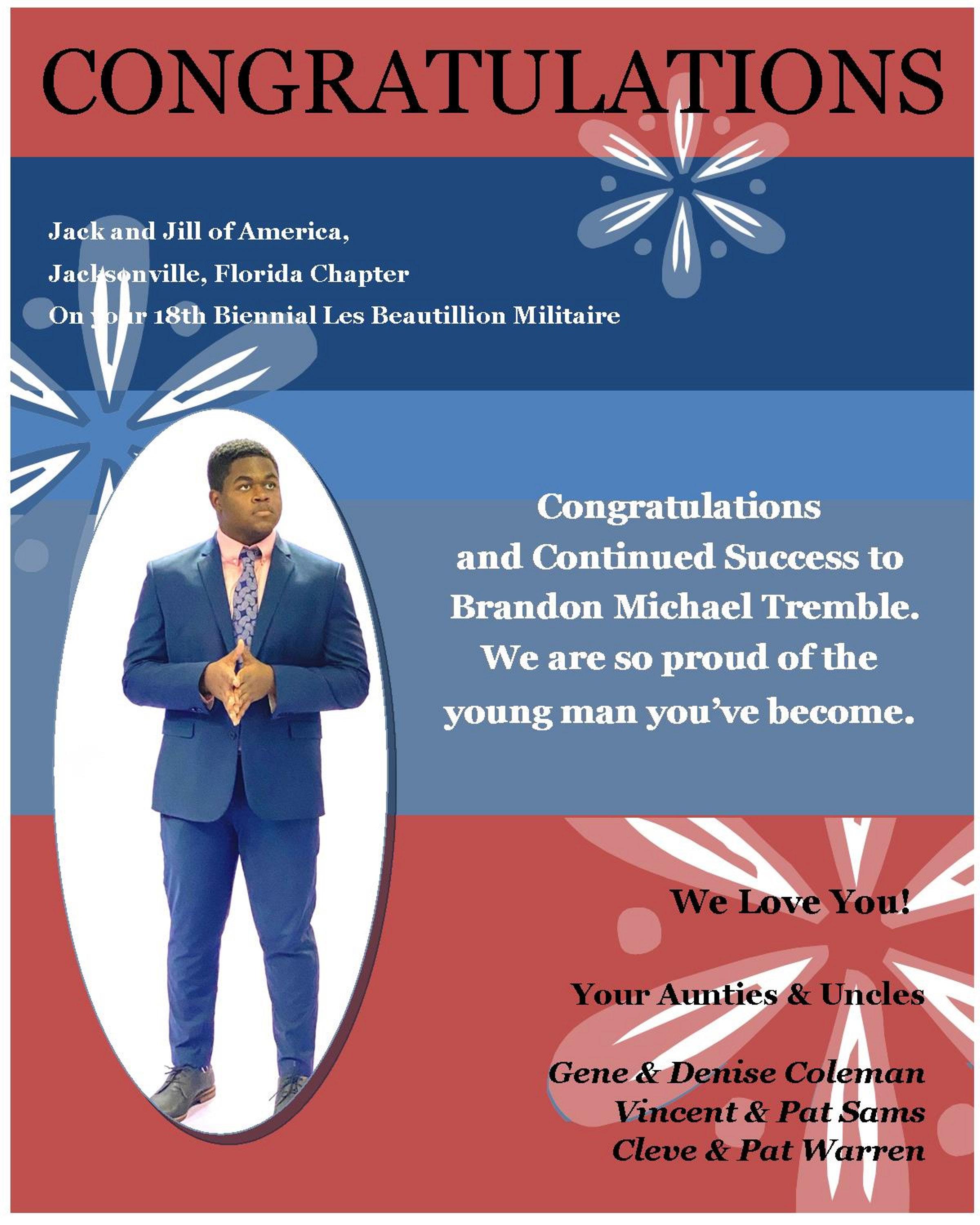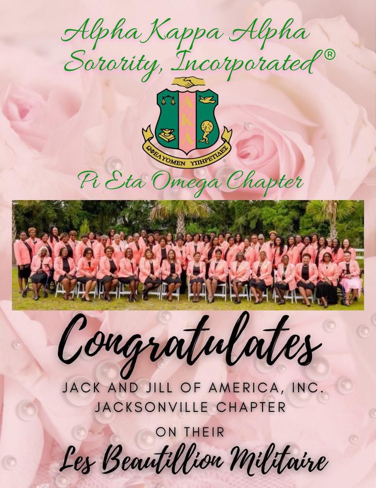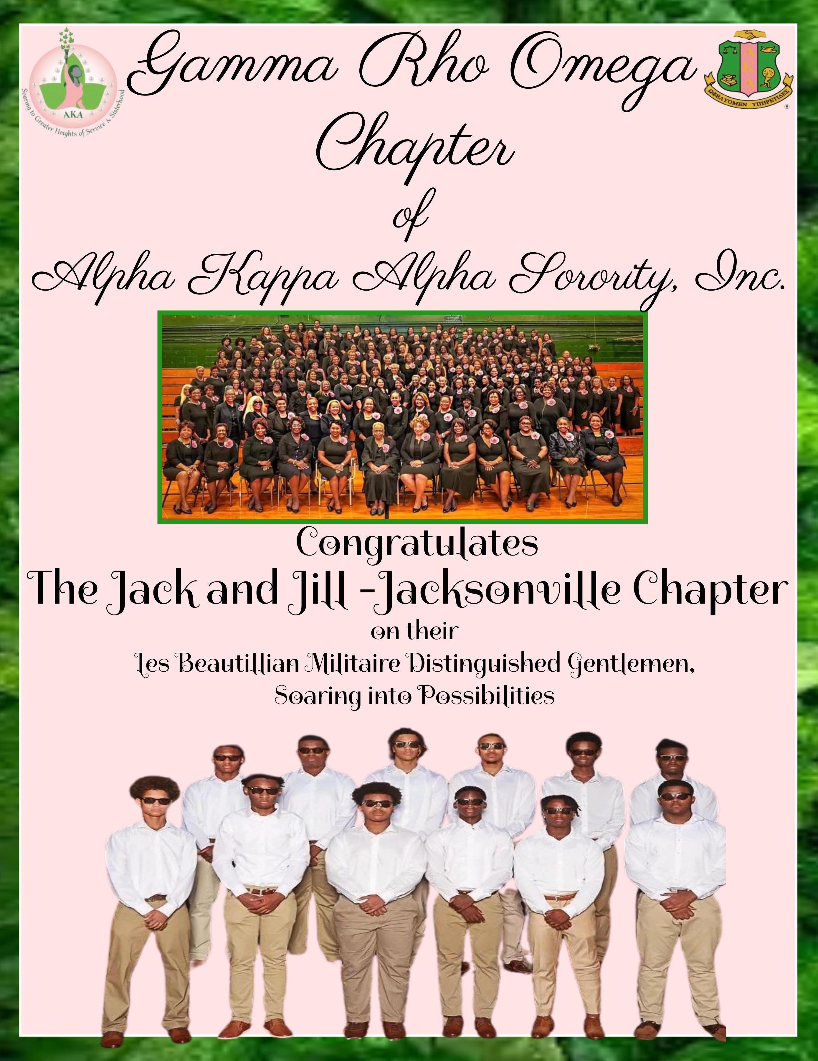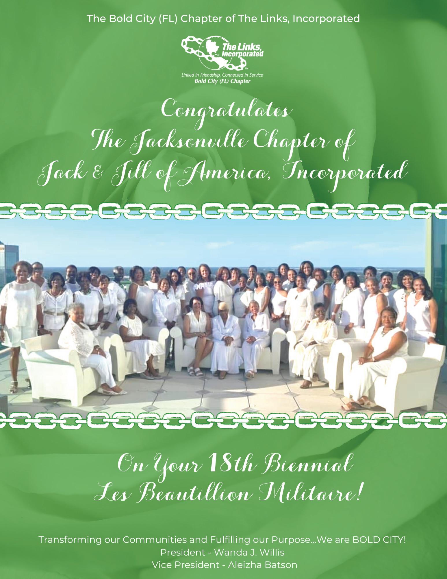 Les Beautillion Militaire is a major fundraiser for the Jacksonville Chapter of Jack and Jill of America, Incorporated. Your generous contribution will benefit the Shannon Smith McCants’ Memorial Scholarship, an educational fund established in 2008 in memory of a dedicated member of the Jacksonville Chapter, and local charities in the Jacksonville community. A portion of the funds raised will also benefit the Jack and Jill of America Foundation, Incorporated which supports programs across the nation that build leadership and character in youth.