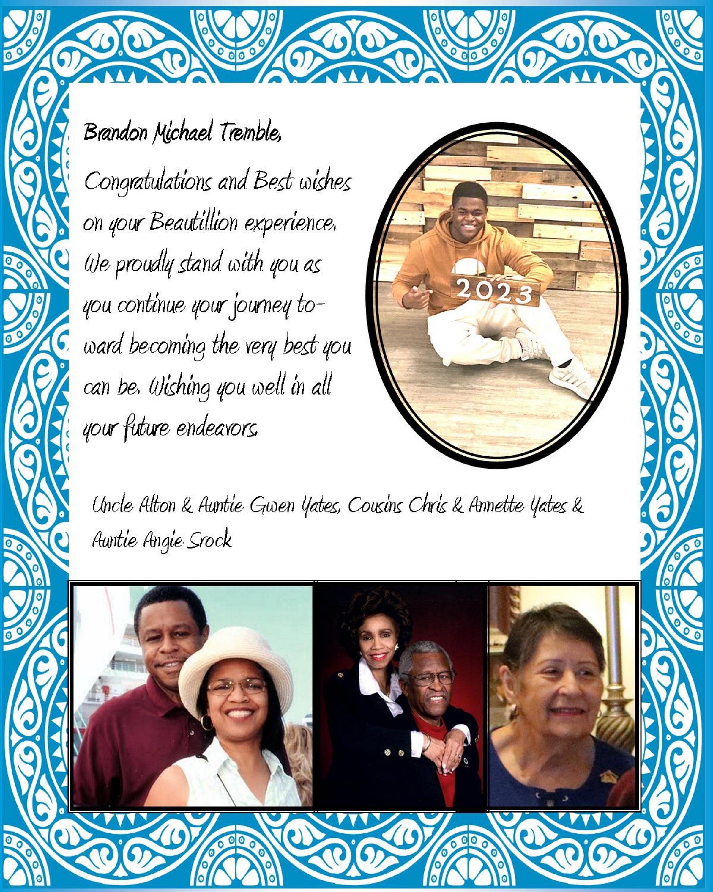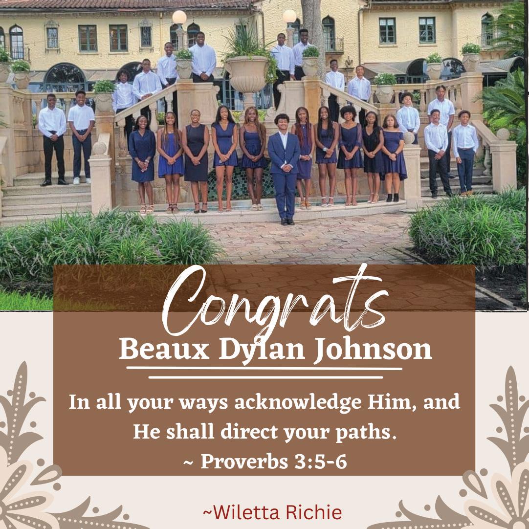 The Beaux Class of 2023, who have been affectionately named "The Distinguished Gentlemen," has exceeded all our expectations. They kicked off this journey to manhood with a bonding experience at a team-building retreat, followed by a series of workshops presented by community leaders on a variety of topics and dance rehearsals. In addition, these enterprising young men worked together to develop and execute a community service project – working to fulfill the wish list items of the local Ronald McDonald House to support families with sick children in their time of need. Through the workshop series they have learned the importance of punctuality and developed their leadership skills. They learned the importance of situational awareness and participated in a financial planning seminar which inspired them to begin a journey to becoming millionaires. And they managed to do all of this while also learning a few dance moves so they can knock your socks off this evening. Most importantly they embraced the process and have transitioned from boys to distinguished young gentlemen. They are ready for presentation to society. They are “The Distinguished Gentlemen,” and we count ourselves blessed to be witness to such greatness. To the Beaux we say, we know this world offers you very few emotional anchors and places for unfiltered vulnerability, safe respite, and meaningful encouragement. One of our goals as Chairs was to foster a support system that you can rely on as you continue your individual journeys beyond Beautillion. So in the words of Mother Teresa, "Go Forth. Do Good.", and to those wise words we would add “Be Great.”