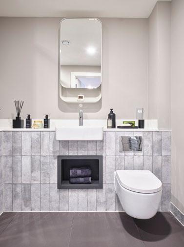 + White composite vanity worktops with 100mm upstand and full height fitted mirror above (bathroom) and feature mirror fronted storage cabinet (en-suite)