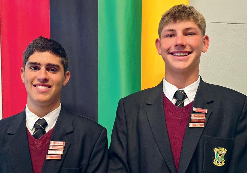 Baie geluk aan ons hoofleiers vir 2025 - Dewet Bruwer (hoofseun) en Jeandré le Roux (onderhoofseun).