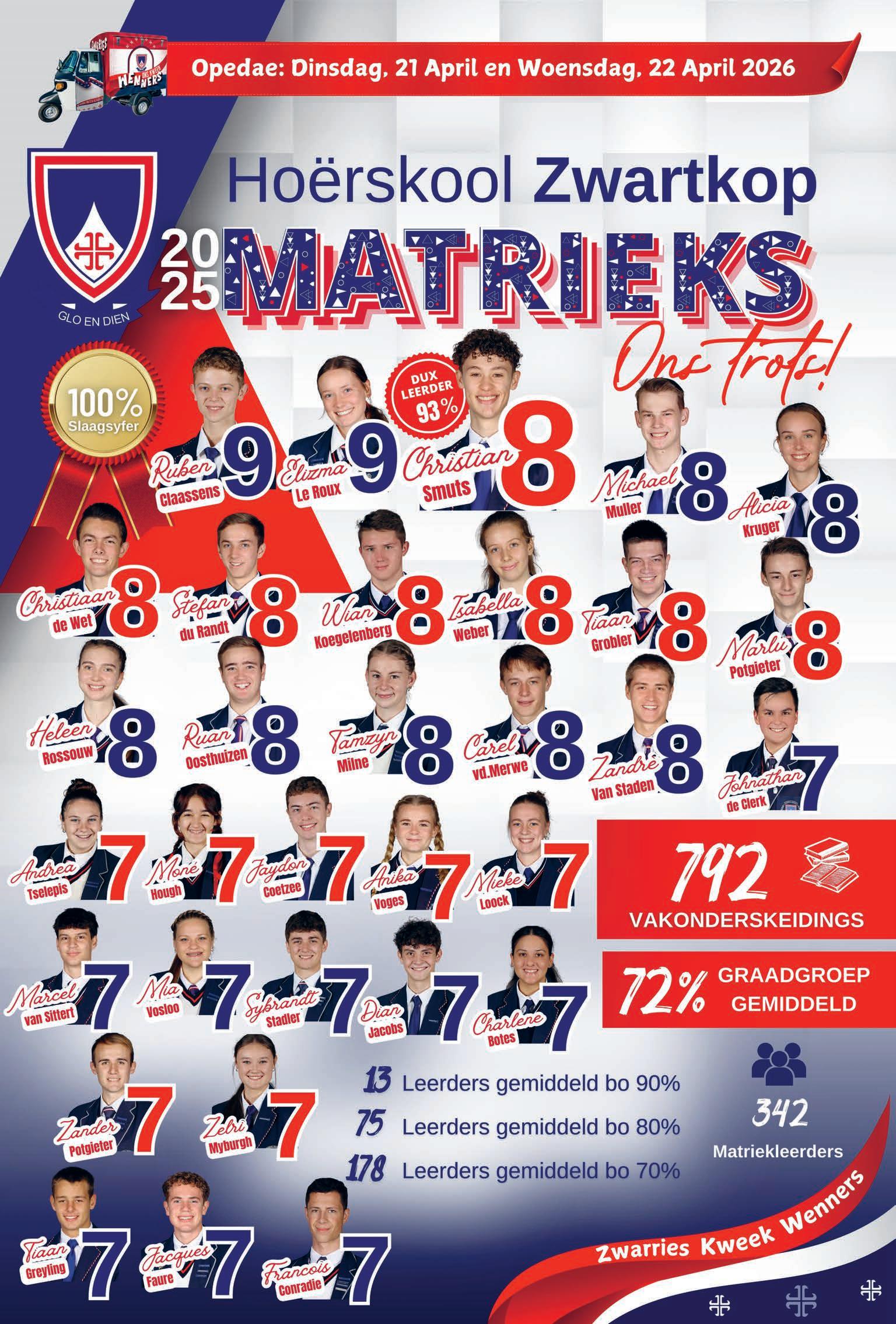 It is a privilege to communicating our phenomenal Matric Results for 2025. It is imperative to remember that the measure of individual success is more about analysing continuous improvement against benchmarked goals. We are so excited to congratulate the whole class who have without exception performed against our high standards.