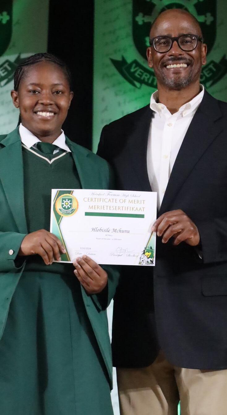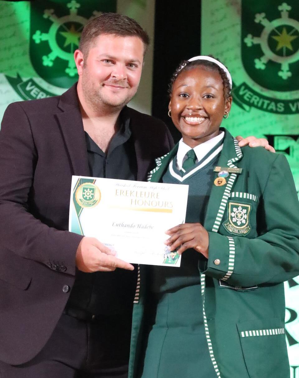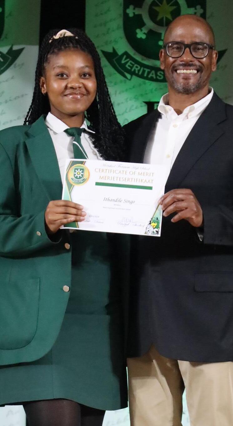Madri Strauss Mees begeesterde leerder in CNST prakties. Beste prestasie in PHSC, LO. Algehele beste prestasie in gr.12