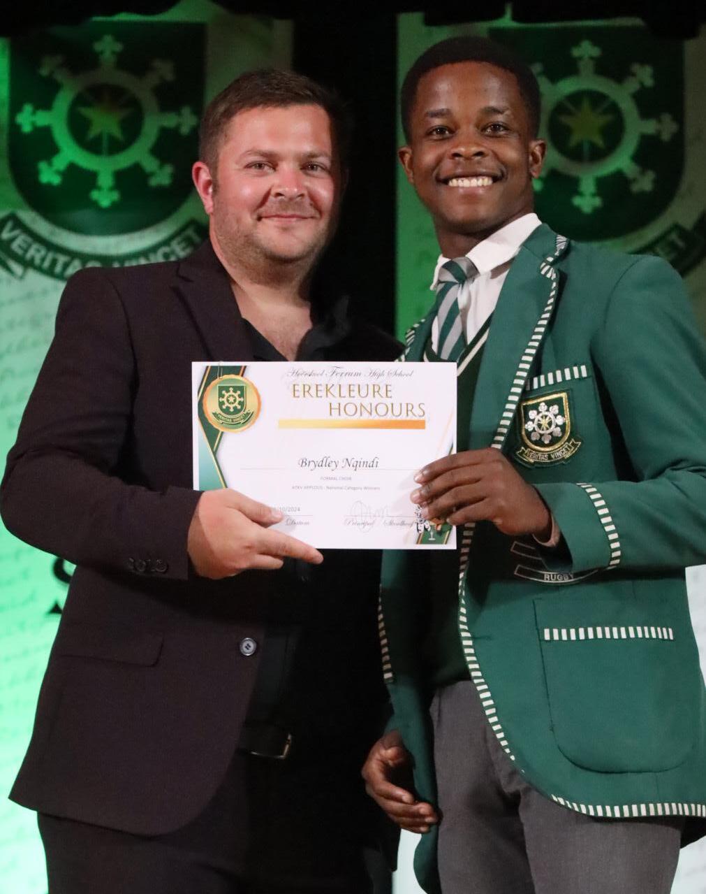 Madri Strauss Mees Begeesterde Leerder in CNST Prakties. Beste prestasie in PHSC, LO. Algehele beste prestasie in Gr. 12