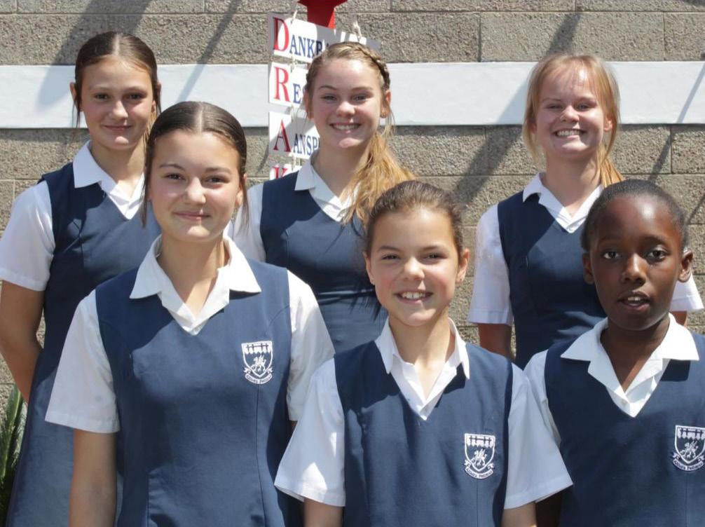 Yamkelo Nhlapo, Mecaella Bruyns. Ry 3: Sandisiwe Mbongwa, Janu Badenhorst, Lunwabo Zuma, Kuhlekonke Nala, Zenani Shabangu. Agter: Alondwe Goge, Cara Breedt, Abongwe Ntanzi, Juf. L. du Preez. Afwesig: Madisyn Pottas, Isabella Lombard.