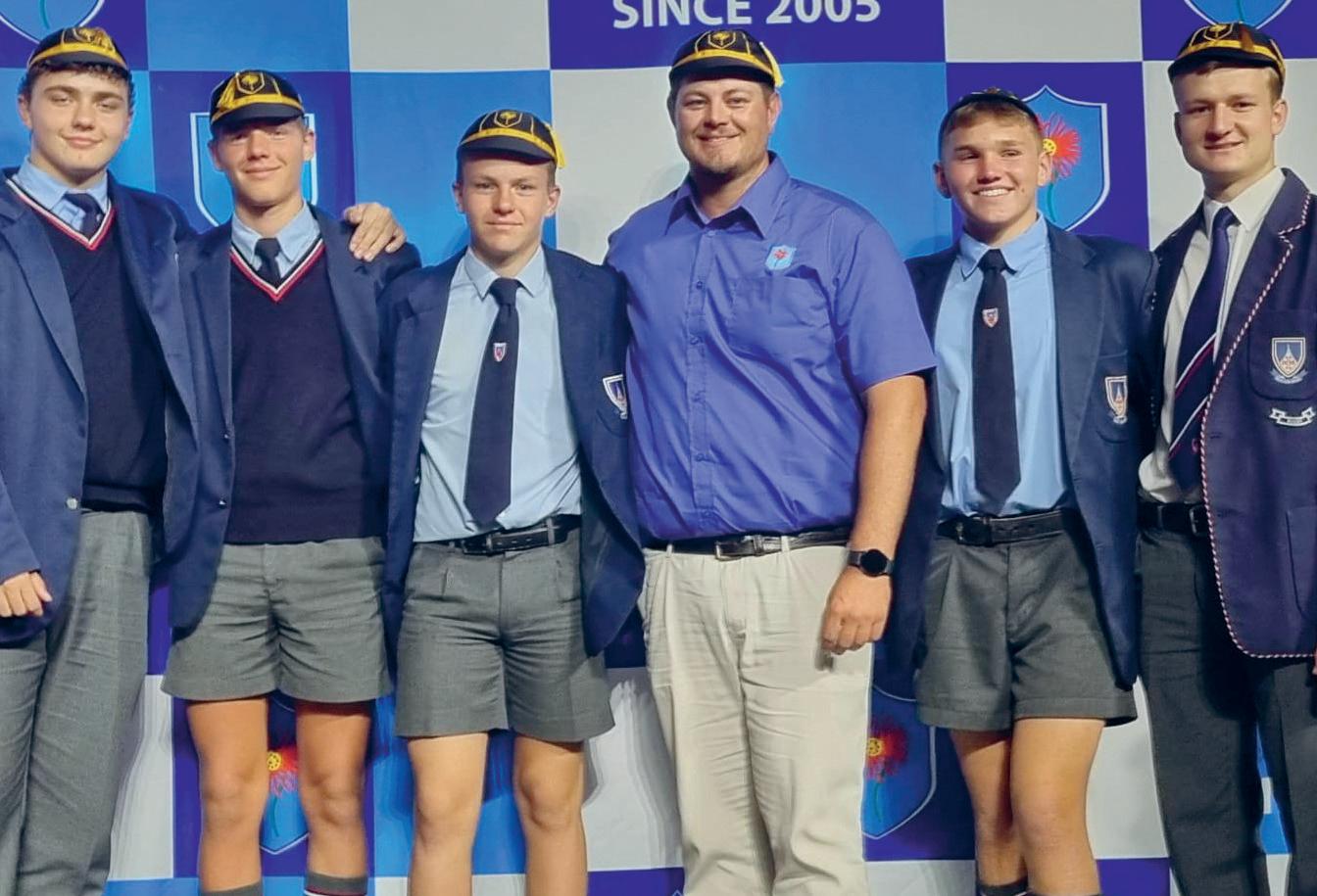 Logan Knott, Dylan du Preez, Christopher Dobson, Mnr. Chris Engelbrecht (afrigter), Wilhelm du Toit en Adriaan Jansen van Vuuren.
