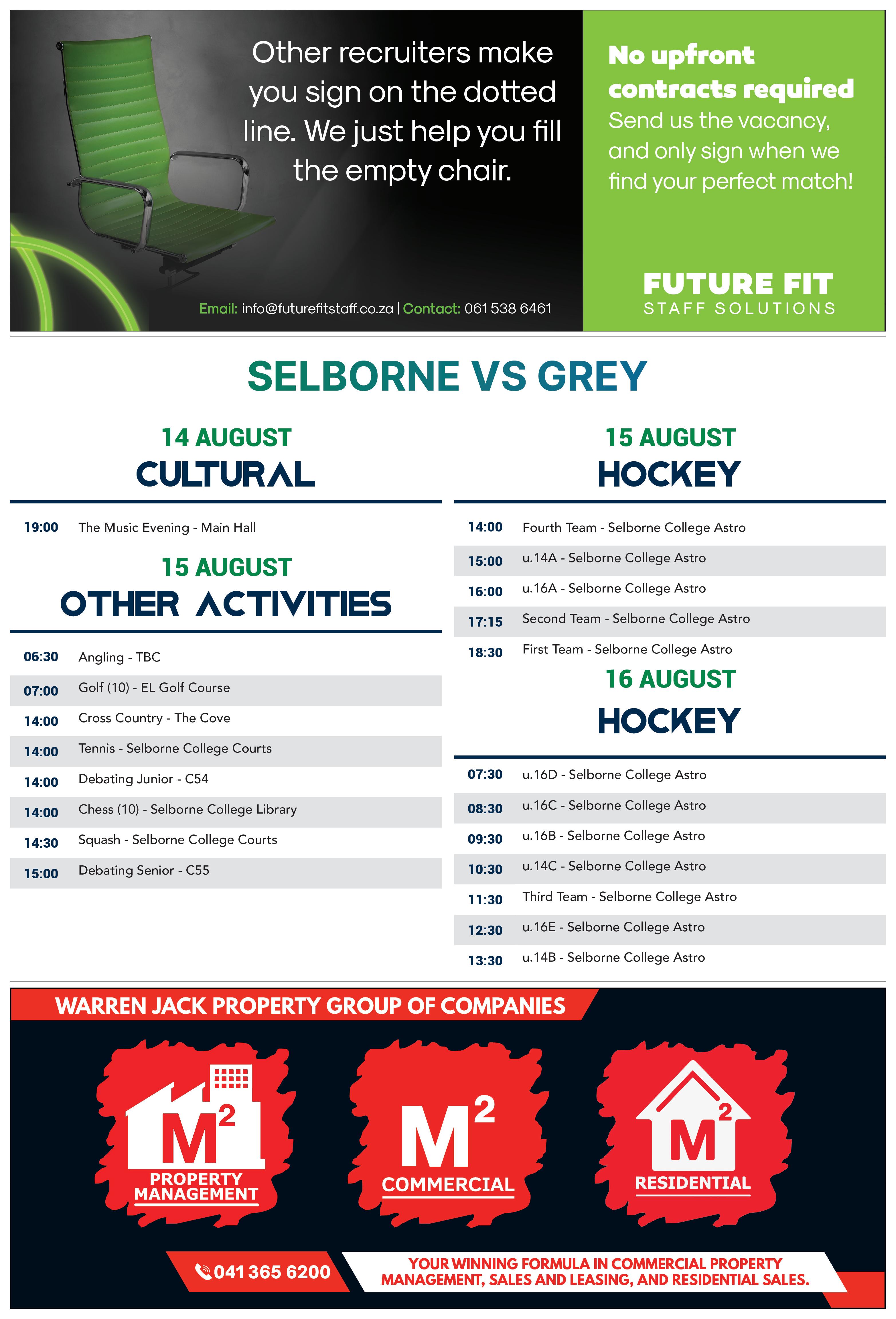 Selborne College is delighted to host our Annual Derby Fixture between Selborne College and Grey High School.