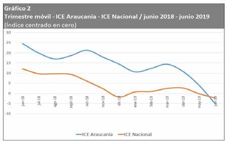 trimestre móvil, el ICE Araucanía presentó una tendencia a la baja, pese a esto, mantuvo su nivel de confianza en “neutral” (Gráfico 1). De las seis principales variables que participan en la evaluación², cuatro proyecciones disminuyeron su nivel de confianza, mientras que el resto de las variables mantuvieron su nivel.