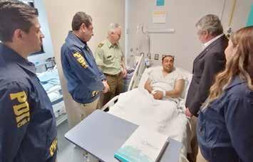 Una visita para verificar el estado de salud y entregar su apoyo y respaldo a los carabineros de Fuerzas Especiales, lesionados en las últimas horas en Ercilla, realizaron este viernes las autoridades lideradas por el intendente de La Araucanía, Jorge Atton Palma; el prefecto inspector Víctor Pérez Oliva, jefe regional de la PDI; y el jefe de la Zona Araucanía Control Orden Público de Carabineros, general Marcelo Araya Zapata. Hasta el recinto médico donde se encuentran recibiendo los cuidados en la ciudad Temuco, llegaron las autoridades, para entregar una palabra de aliento y agradecimiento, al teniente coronel Renzo Miccono Villablanca, herido por disparos que dejaron múltiples esquirlas en sus brazos y al capitán Cristian Torres Molina, quien recibió un impacto cuyo proyectil se alojó en su rodilla derecha. Ambos, realizaban labores de seguridad