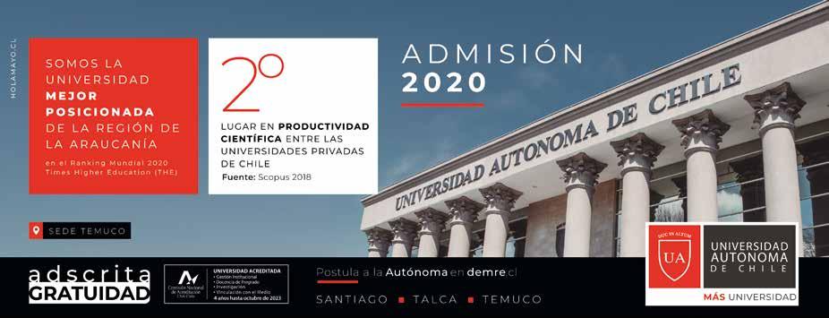 www.tiempo21araucania.cl Precio $500 Tiempo21 Araucanía @DiarioTiempo21 REGIÓN DE LA ARAUCANÍATEMUCO Semana del 31 de enero al 06 de febrero de 2020 / Año 11 / N° 580