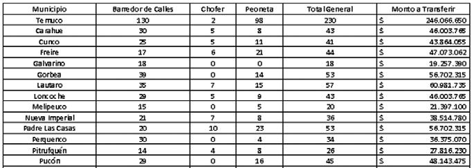 con este beneficio son 16.409 en todo Chile, quienes se desempeñan en 267 municipios desde Arica hasta Cabo de Hornos. El resto de las 78 municipalidades cuentan con servicios de aseo con personal propio.