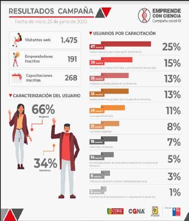 De acuerdo a los registros de la campaña Emprende ConCiencia de los 191 emprendedores matriculados de los cuales un 66% son mujeres y 34 % hombres. El alcance de la iniciativa también superó las expectativas de un año normal, por cuanto, se inscribieron 28 capacitaciones y 1475