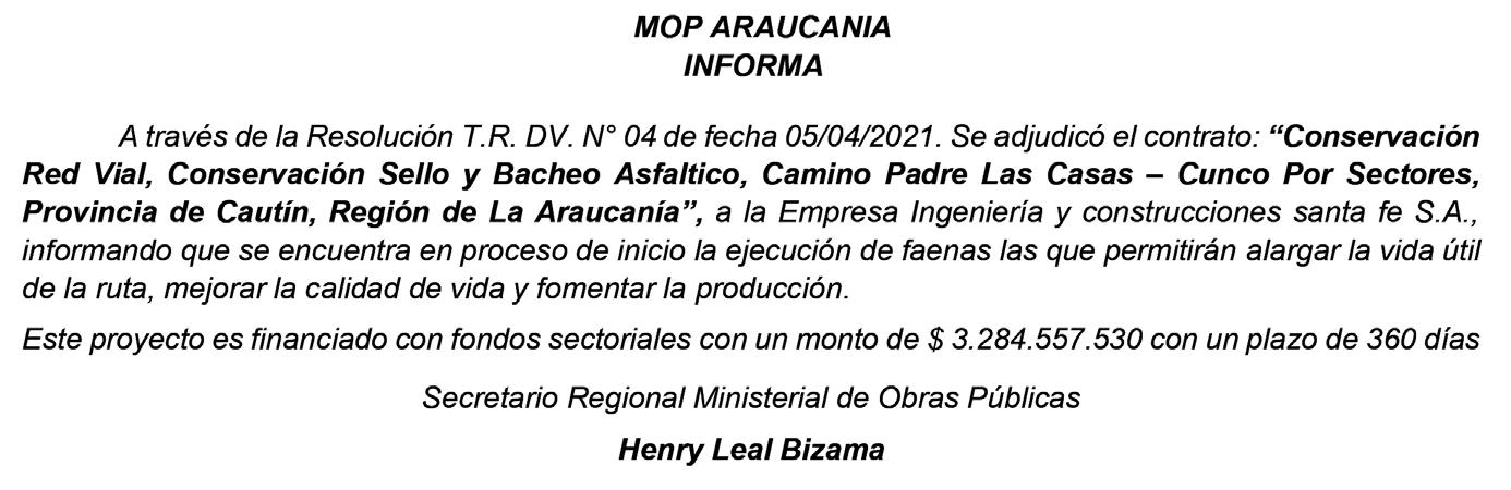 4. La Zona de servicio corresponde a las comunas de Temuco, Nueva Imperial, Vilcún y Padre Las Casas, de la Región de La Araucanía.