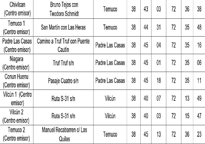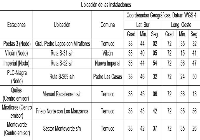 3. Ubicación de Centros emisores y Nodos: Para la Región de La Araucanía: