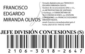 La presente publicación se hace de acuerdo a lo dispuesto en el artículo 15º de la Ley Nº 18.168 de 1982, Ley General de Telecomunicaciones, a objeto de que el que tenga interés en ello pueda oponerse a la concesión, dentro del plazo de 30 días hábiles contados desde la presente publicación. De existir oposición a la solicitud de concesión, ésta deberá presentarse por escrito ante la Ministra de Transportes y Telecomunicaciones, ser fundada, adjuntar todos los medios de prueba que acrediten los hechos que la fundamentan y fijar domicilio dentro del radio urbano de la comuna de Santiago. Por orden del Subsecretario de Telecomunicaciones