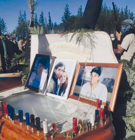que parecía ser un fusil M-16. Esta guardia armada también estuvo presente en el masivo funeral realizado el martes 13, donde testigos relataron que, salvo por el ruido del rotor de un helicóptero que se escuchaba a la distancia, hubo ausencia policial. En el funeral también se escucharon tiros al aire en modo de ráfaga durante la ceremonia fúnebre donde niños realizaban danzas tradicionales. El sitio Werkén Noticias aseguró ese día que asistieron al funeral miembros de otro de los grupos radicales de la zona: la Weichan Auka Mapu (WAM).