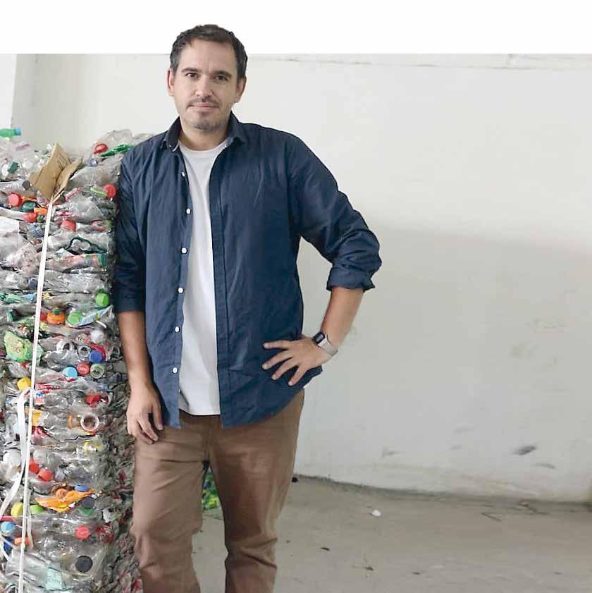 “MADERA” DE PLÁSTICO Jorge López, es un emprendedor ecológico que venía del mundo textil, produciendo ropa deportiva para grandes tiendas del retail. Fue en ese contexto que descubrió que el vestuario que producía y que en su gran mayoría era fabricado con poliester (un tipo de resina plática que se obtiene del petróleo), terminaría originando un grave daño al medioambiente, por lo que decidió abandonar el rubro, dando un giro completo a esa vía comercial y comenzó a investigar cómo colaborar de verdad en la protección del ecosistema. Así conoció algunas experiencias que se estaban desa-