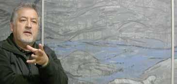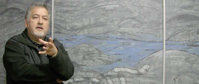Las obras están organizadas en polípticos, sobre tela, que tratan aspectos históricos, rituales, míticos, personajes y otros referidos a sus tierras; materia que ha sido investigada por el artista, en sus lecturas, estudios, sus viajes y recorridos por las regiones de El Biobío, La Araucanía, Los ríos y Los Lagos, incluyendo ciudades del territorio argentino. El artista ha realizado diversas Residencias Artísticas, durante los últimos 40 años, en Argentina, Uruguay, Brasil, Perú, Francia, Italia, Barcelona, incluyendo diversas Residencias en comunidades de los más diversos territorios que le han permitido registro de relatos y tradiciones, catastro de sitios sagrados. Se trata de un viaje de investigación, registro y creación de arte, que se resume en esta exposición; por esta razón visitamos al artista en su taller.