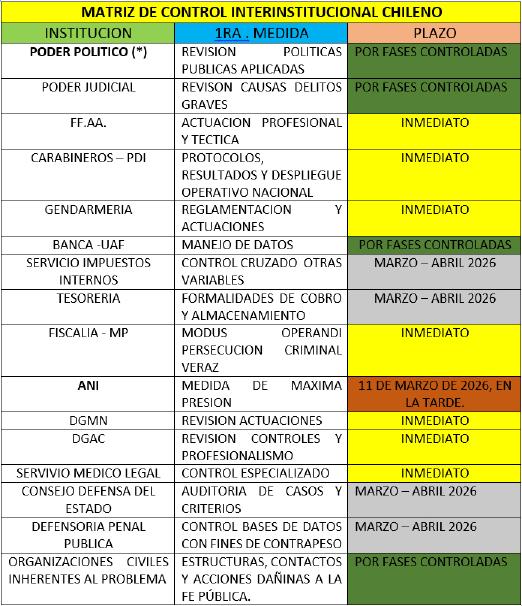 (*) Se refiere a gobierno y todos sus ministerios, Senado y Cámara de diputados, delegaciones, Seremis de seguridad.