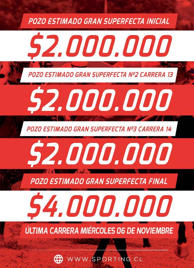 Acertar el 1er, 2do, 3er y 4to lugar de una carrera, en orden exacto, con un mínimo de cuatro ejemplares seleccionados. Valor mínimo $ 100.