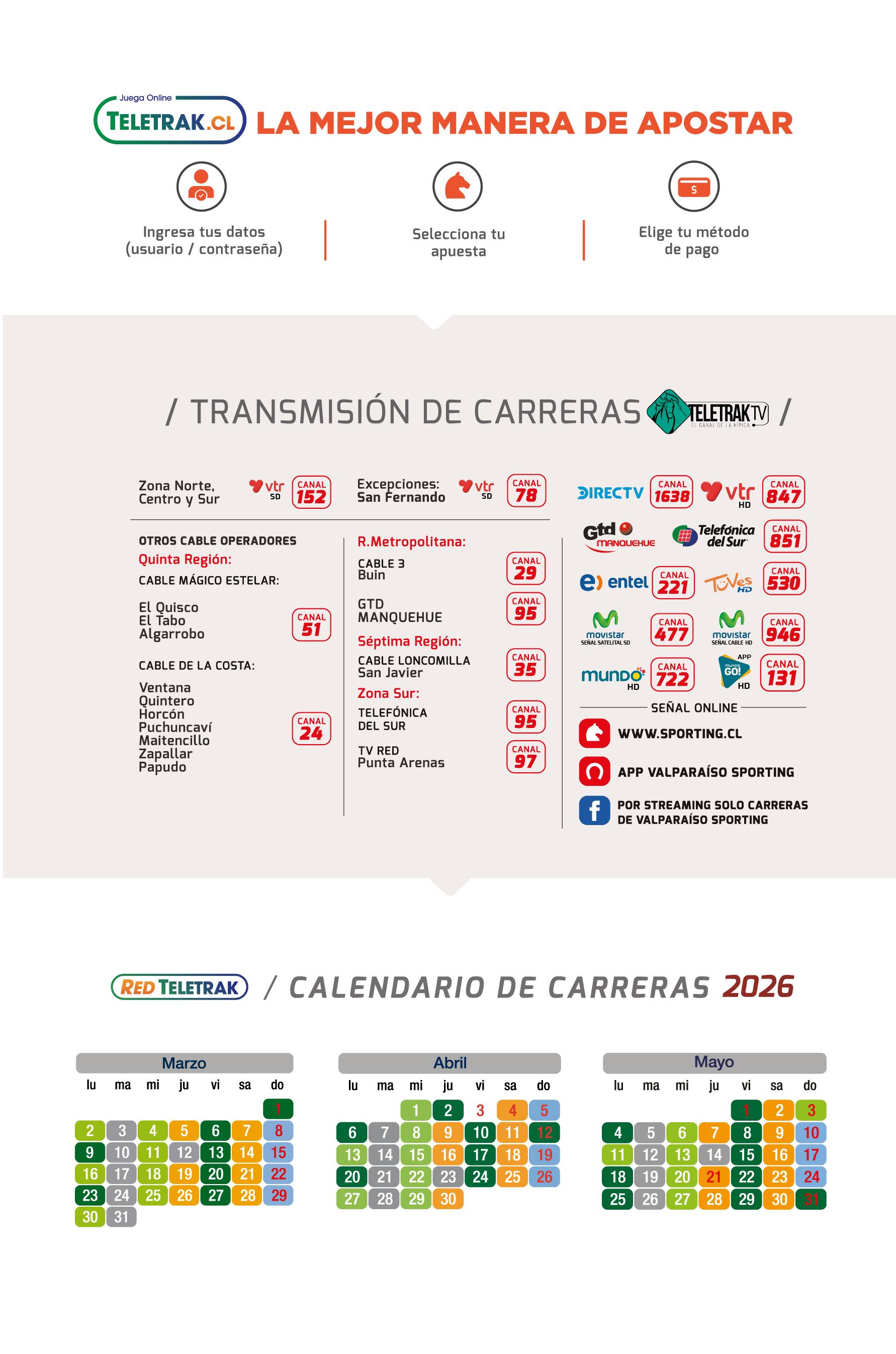Sporting se reserva la facultad de cambiar la distancia y la pista sobre la que se correrá una carrera, cuando por razones técnicas o de fuerza mayor así lo ameriten. (Neblina, lluvia u otras)