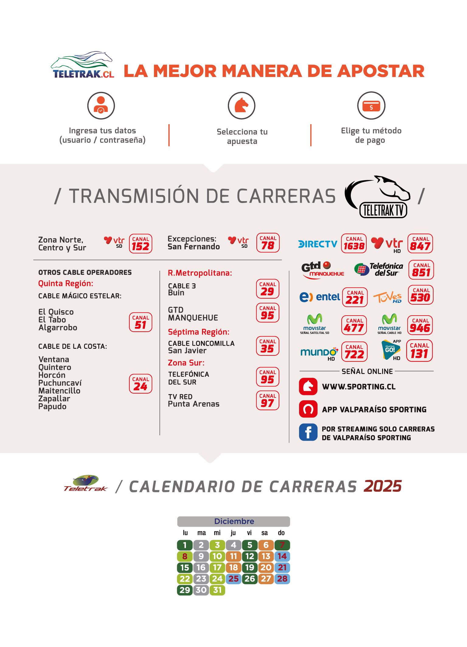 Acertar el 1er y 2do lugar de una carrera, en cualquier orden, con un mínimo de dos ejemplares seleccionados. Valor mínimo $ 200.