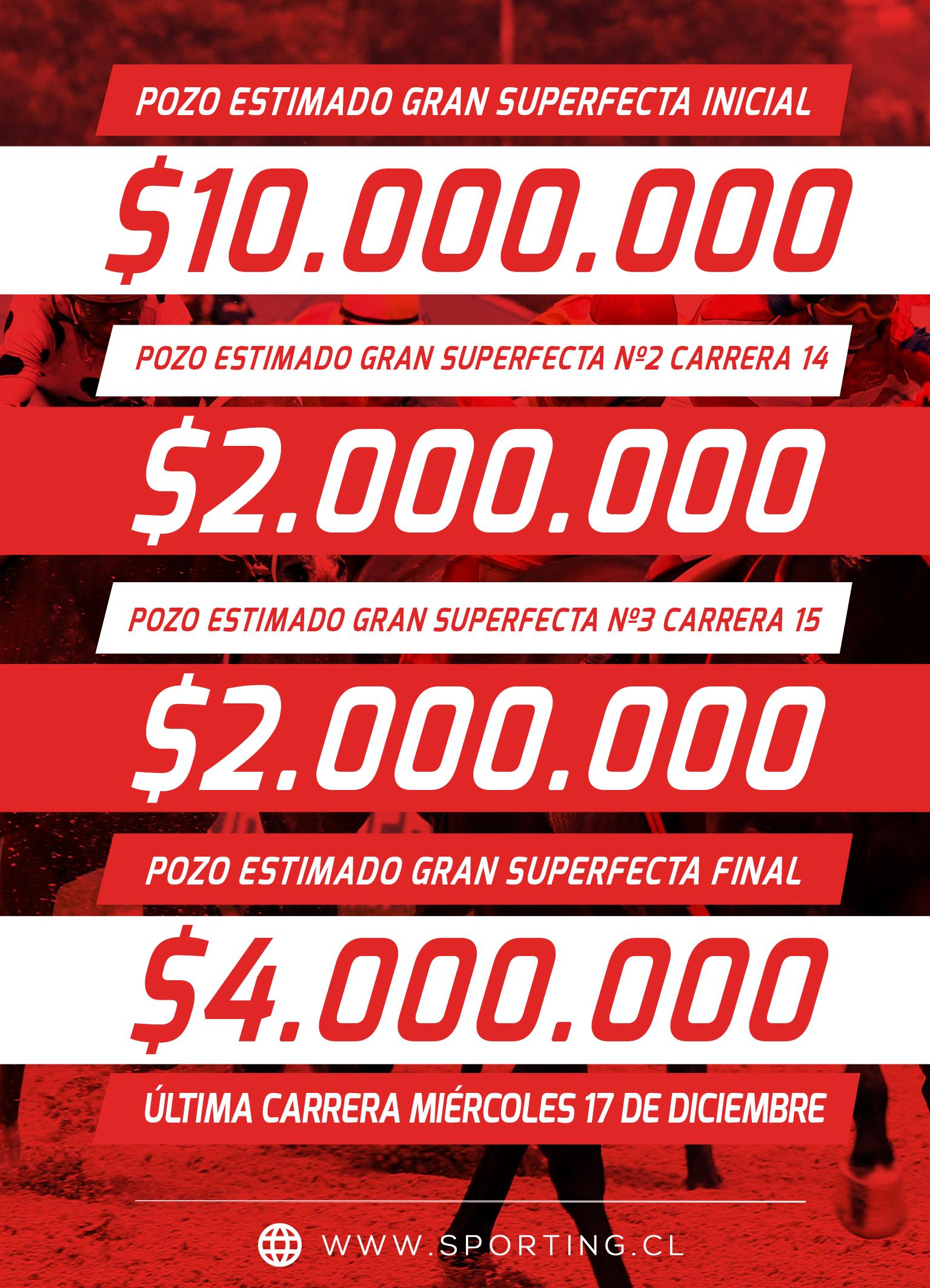 Acertar el 1er, 2do, 3er y 4to lugar de una carrera, en orden exacto, con un mínimo de cuatro ejemplares seleccionados. Valor mínimo $ 100.