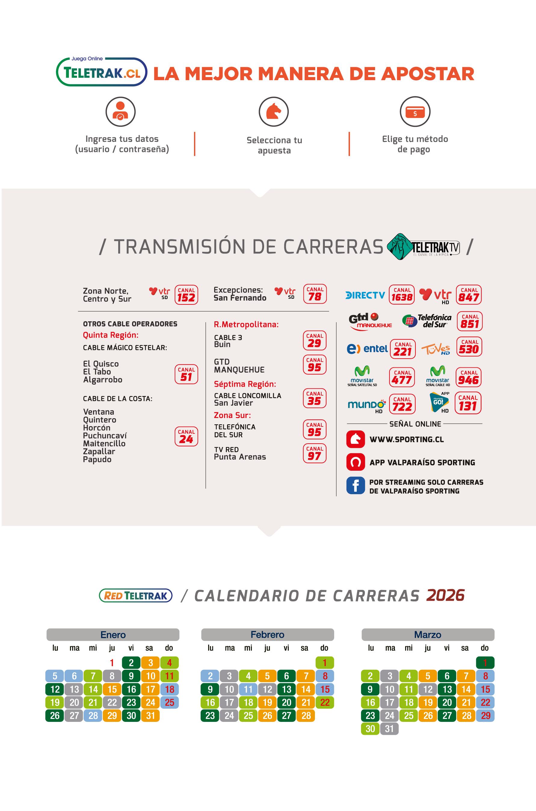 Acertar el 1er y 2do lugar de una carrera, en cualquier orden, con un mínimo de dos ejemplares seleccionados. Valor mínimo $ 200.