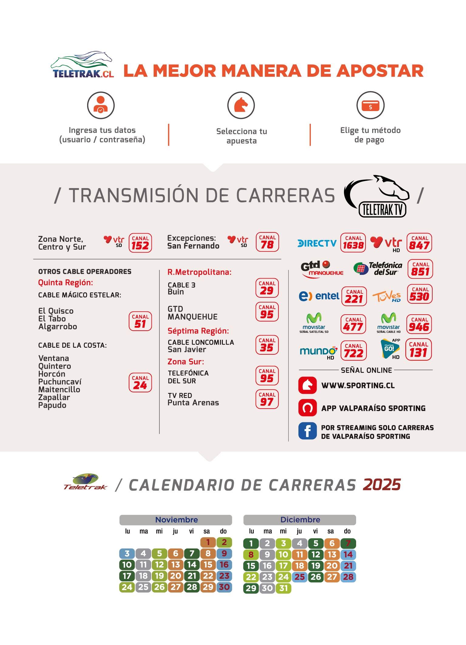 Apuesta que consta de dos carreras o etapas consecutivas y predeterminadas. Consiste en acertar el 1er y 2do lugar, en cualquier orden, en ambas etapas, con un mínimo de dos ejemplares por etapa. Se juega sólo en forma anticipada hasta el momento de la partida de la carrera que corresponde a la 1ra etapa. Valor mínimo $ 200.