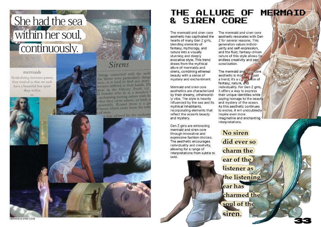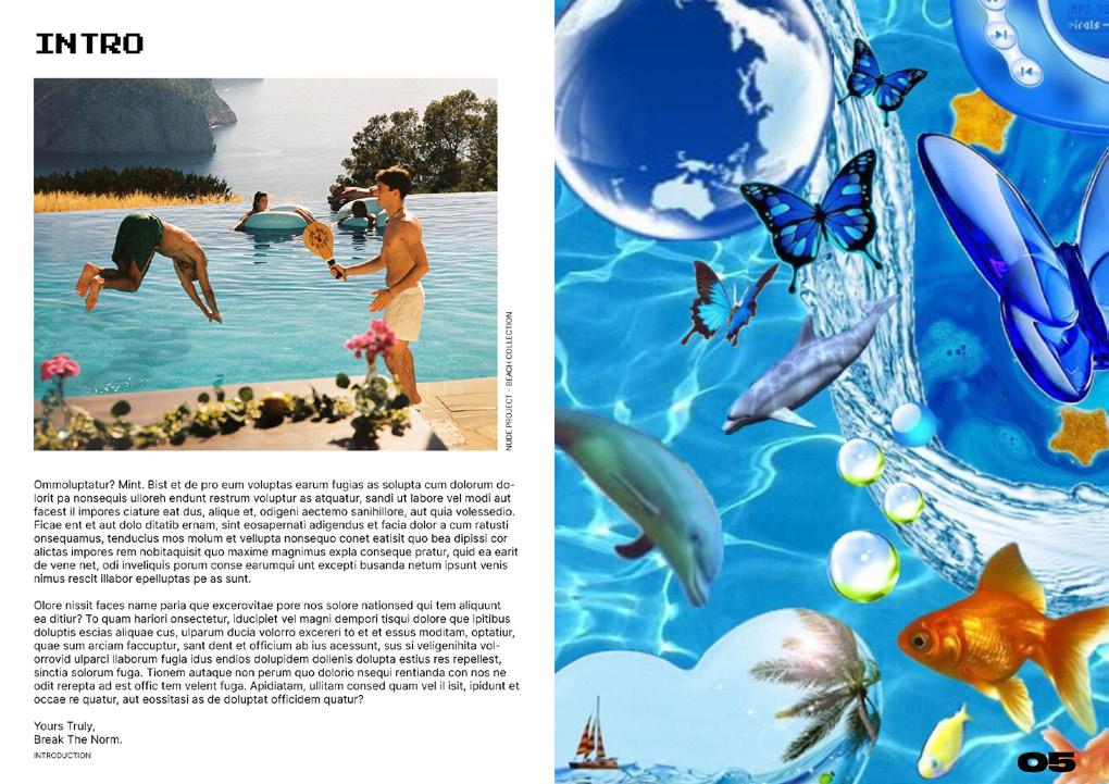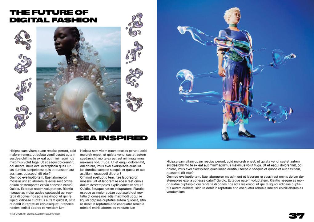 Here are selected spreads from the magazine I designed. Each article explores a different aspect of fashion inspired by the sea and water — from the historical influence of water in fashion, to luxury brands incorporating aquatic elements, to modern streetwear summer collections popular among Gen Z.