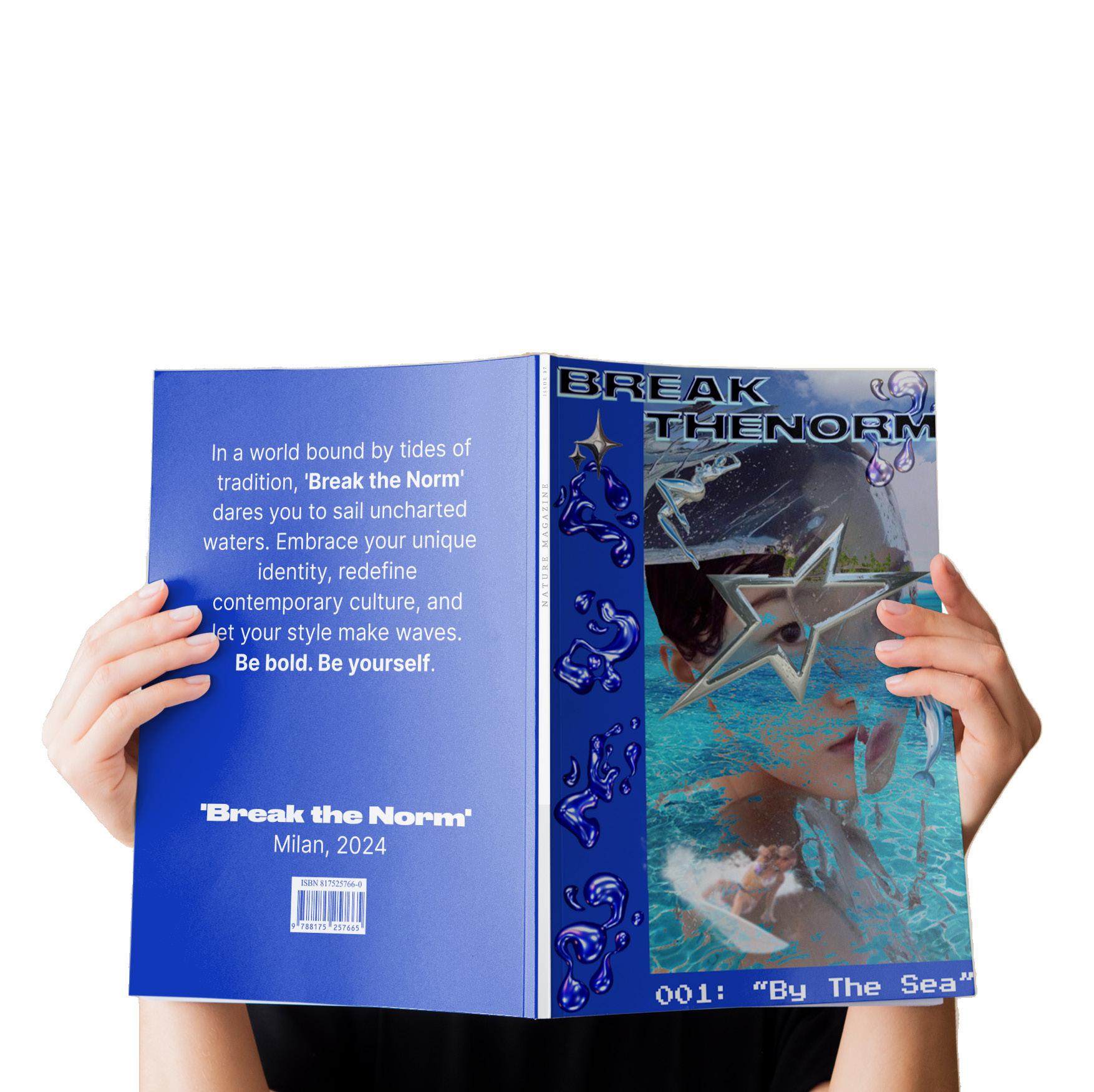 Issue 001: Break the Norm by the Sea. This issue’s focus on fashion in the elements of sea and water. It aims to mock the norms and provoke thought with an underlying message of staying authentic to oneself and one’s personal style.