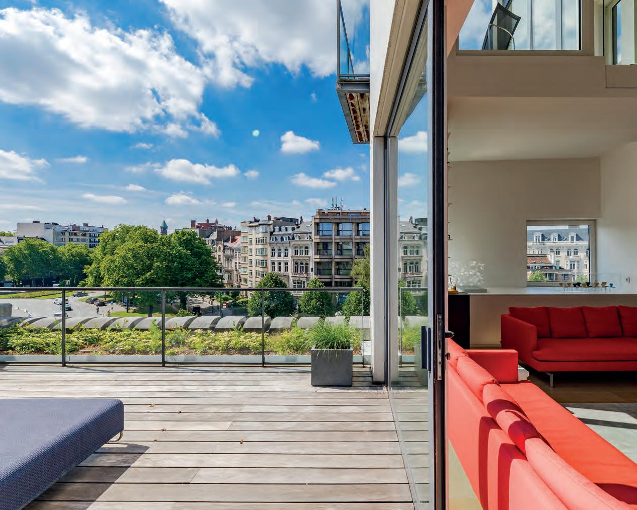 WOLUWE-ST-PIERRE –MONTGOMERY - With a dominant view on the square, sumptuous duplex penthouse, +/- 420 m², with panoramic terraces of +/- 140 m². Large receptions, hyper-equipped kitchen, 4 bedrooms, 4 bathrooms. Garage for 2 cars. High quality finishes. EPC C-