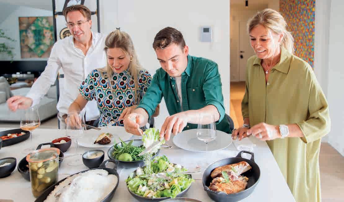 Ook Gitte werkt al enkele jaren in de zaak. En Aaron is de sommelier. 'Een grote meerwaarde', zeggen hun ouders unisono. 'Nu neemt Gitte mijn rol in de zaak wat over', zegt Viviane. 'Maar ze doet ook veel backoffice: reservaties, nagaan wie komt, met welke allergieën we rekening moeten houden of er zwangere vrouwen zijn, enzovoort. Voor die taken kruipt ze om half een 's nachts achter de computer en stuurt alles door voor de volgende dag.' 'In Aaron heb ik erg geloofd', zegt Viki. Dat hij de vriend van onze dochter werd, geeft een onvoorwaardelijkheid – en ook wel een duw in mijn rug.'
