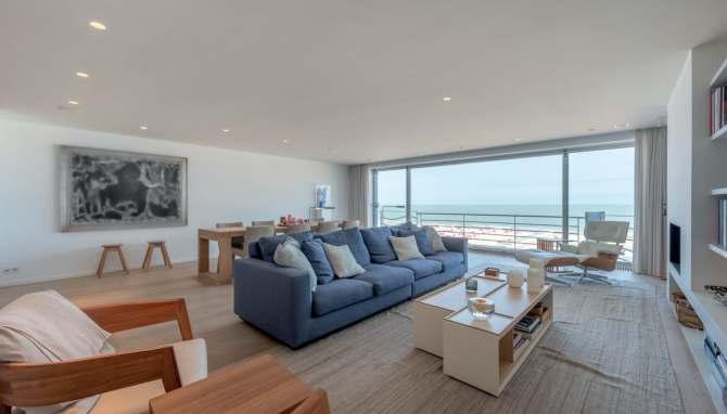 Magnifque appartement sur la digue piétonne du Zoute, avec une vue frontale imprenable sur la mer.