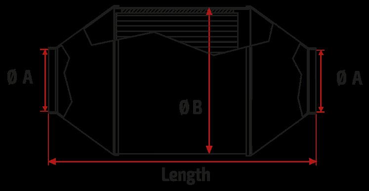 Inlet Pipe Diameter= 54mm Body Diameter= 114mm Length without ending tubes = 220mm