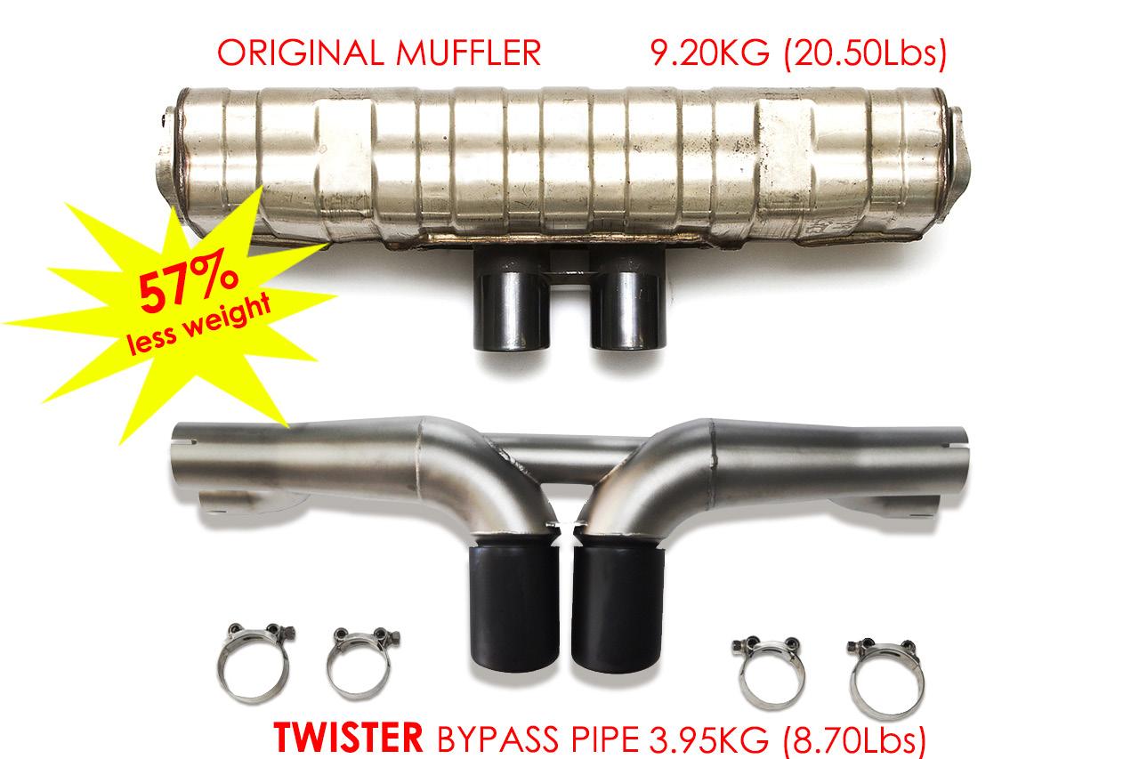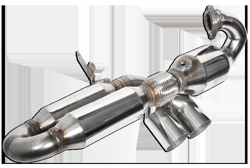 With bypass vacuum valves compatible with the OEM electronic management that allow a nice but still comfortable sound when closed, that gets really race-like and aggressive once open Replaces the 2nd catalytic converters - fits to the stock oval endpipes fitted to the bumper.