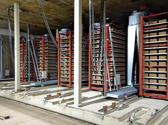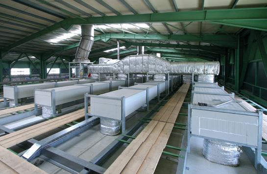 smaller number of rows than traditional systems to ensure optimal airflow. Hot air from the thermal room is distributed to each module via servo controls to maintain the desired temperature and humidity curve. Average drying cycles can vary from 4 to 8 hours for more complex materials. It is also worth noting that the installed power rating for this type of dryer is significantly lower than that of traditional systems. Thanks to the use of proprietary high-efficiency fans designed specifically to ensure continuous airflow across the product, actual electricity consumption is reduced.
