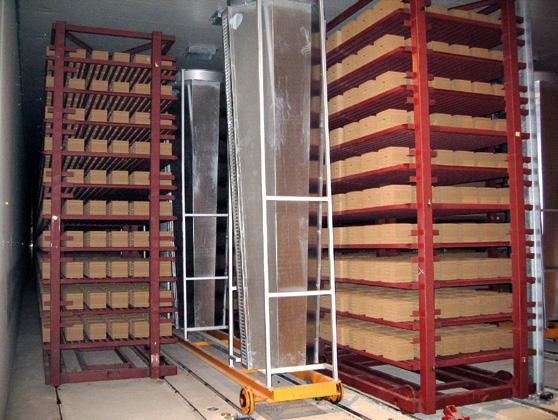 Questi impianti si basano sul passaggio continuo e trasversale dell’aria, a specifiche condizioni di temperatura e umidità, attraverso il materiale correttamente posizionato sui carrelli di essiccazione. I ventilatori, appositamente progettati, garantiscono portate di circa 60.000 m³/h e una velocità di attraversamento dell’aria pari a circa 4 m/s.